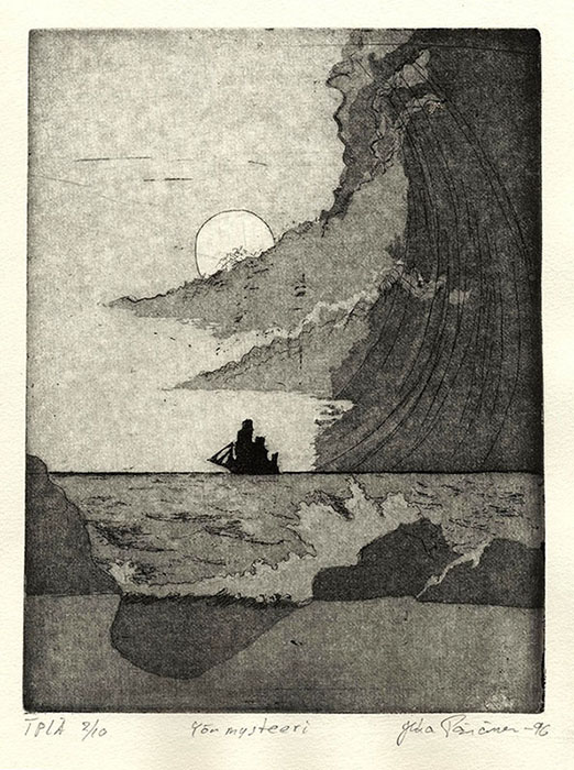 Tässä albumissa esittelen tekemiäni grafiikantöitä. Osa on tehty opiskeluaikanani Pohjois-Karjalan ammattikorkeakoulussa Joensuussa ja osa täällä kotona. Grafiikan rajoittavin tekijä on minulle oman "prässin" puuttuminen. Laattojen tekeminen onnistuisi kyllä kotioloissakin, etenkin kuivaneula -tekniikalla eli suora kaivertaminen laatan pintaan. Tuo kaivertaminenhan on kuin lyijykynällä piirtäisi. Tosin tummuusasteet täytyy tehdä tihentämällä viivojen välejä ja kaikkein tummimmat kohdat ristiviivoituksella. Työvedoksia ja lopullisia vedoksia ei siten voi ottaa ilman "prässiä". Nuo yksinkertaisemmat kuvat ovat puupiirroksia eli kaiverrus on tehty puisen laatan pintaan ja painaminen tapahtuu yksinkertaisesti lusikalla hieromalla. Helppoa eikö vain. Selvimpänä erona ko. menetelmissä on, että työn jälki puupiirroksessa on karkeampi kuin metalligrafiikassa, ja että väri tulee puupiirroksessa laatan pintaan ja metalligrafiikassa laatan uriin.