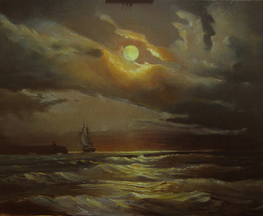 Mielenkiintoni meriaiheisiin maalauksiin näkyy näissä töissä selvästi. Osa teoksista on tehty ns. kerrosmaalaustekniikalla (kuten venäläinen Aivazovski), ja osa mukaillen meidän kultakauden taiteilijoiden tekniikoita kuten Westerholm, Lindholm, Kleinah jne.